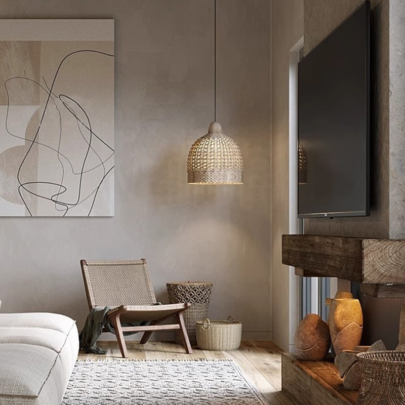 Dining Room Chandelier Retro Tea Room Living Room Bedroom Wooden Rattan Lamps