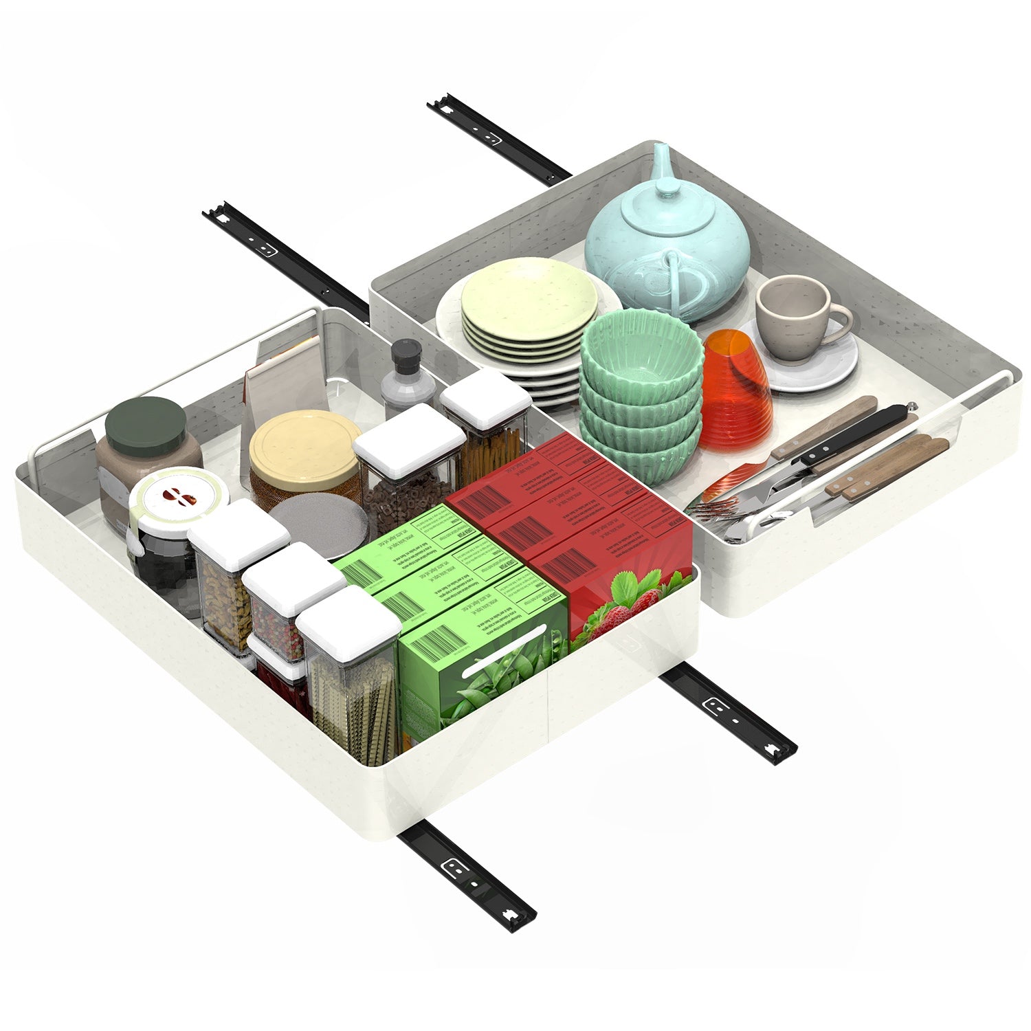2Pcs Pull Out Cabinet Organizers Sliding Shelf Spice Rack Carbon Steel Roll Out Drawers Fixed With Adhesive Nano Film With Handle 55LBS Max Load