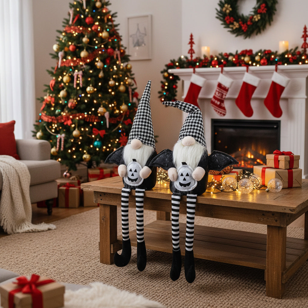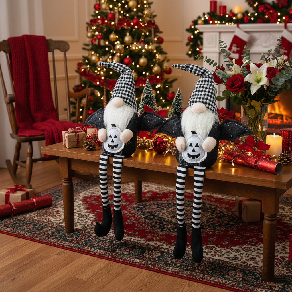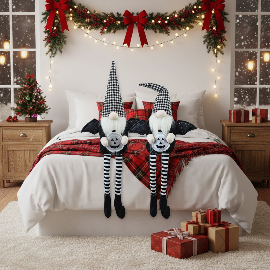 2PCS Set Christmas Gnome Decorations 4.3x3.5x23.5in Festive Sitting Gnomes With Wings & Stylish Plaid Hats, Perfect For Unique Seasonal Decor