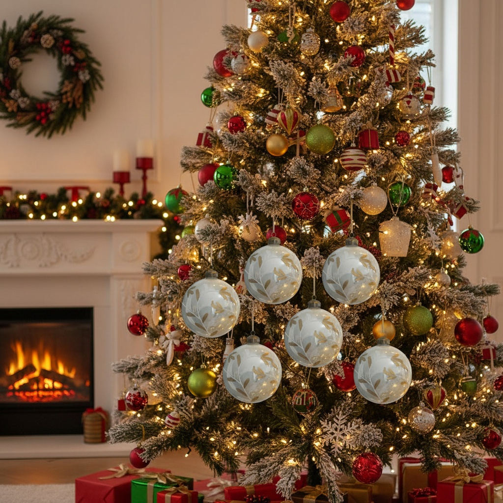6PCS Set 3.9in Christmas Glass Ball Ornaments Holiday Tree Hanging Decor Home Party Baubles