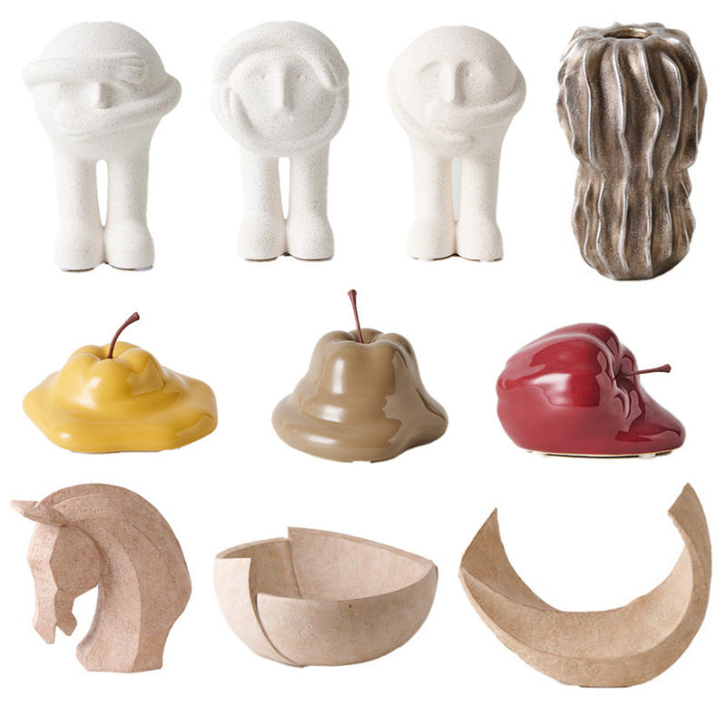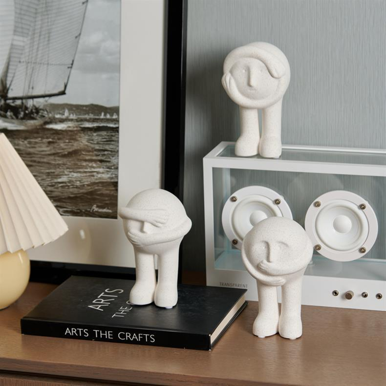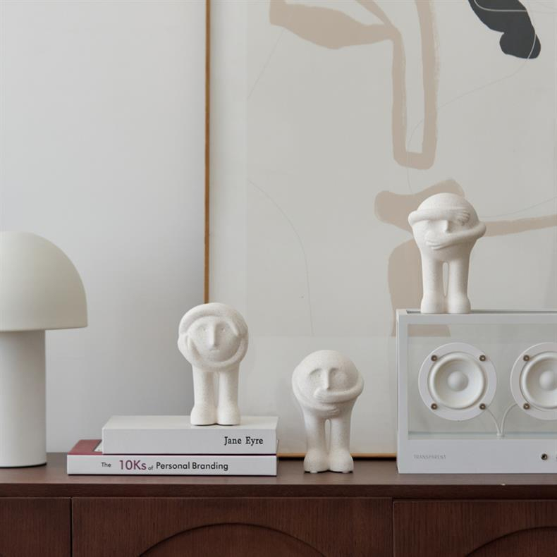 Color: mouth-covering doll (9*9 * 15cm), head-holding doll (9*9 * 15cm), eye-covering doll (9*9 * 15cm), gray brown apple (10*9 * 6cm), wine red apple (10*8*8.5cm), beige apple (11*11 * 5cm), steed ornaments (20*11 * 21cm), light brown Brown decorative fruit plate (30*30 * 15cm), light brown Brown U-shaped ornaments (33.5*13.5 * 25cm), silver paste wave-shaped flower device (15*15 * 25cm)