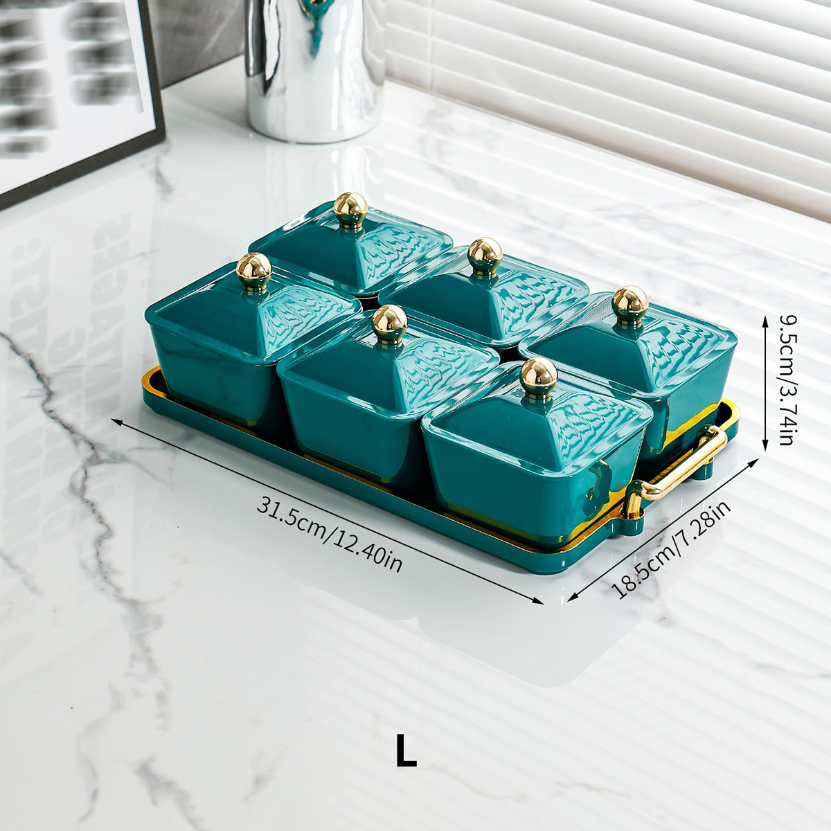 Product information: Color: Emerald little earrings 6 grid gold edge tray 6 snack dish Golden Balls, Emerald little earrings 4 grid gold edge tray 4 snack dish Golden Balls, Emerald little earrings 3 grid gold edge Tray 3 snack dish Golden Balls Style type: simple style Material: Plastic Style: Simple