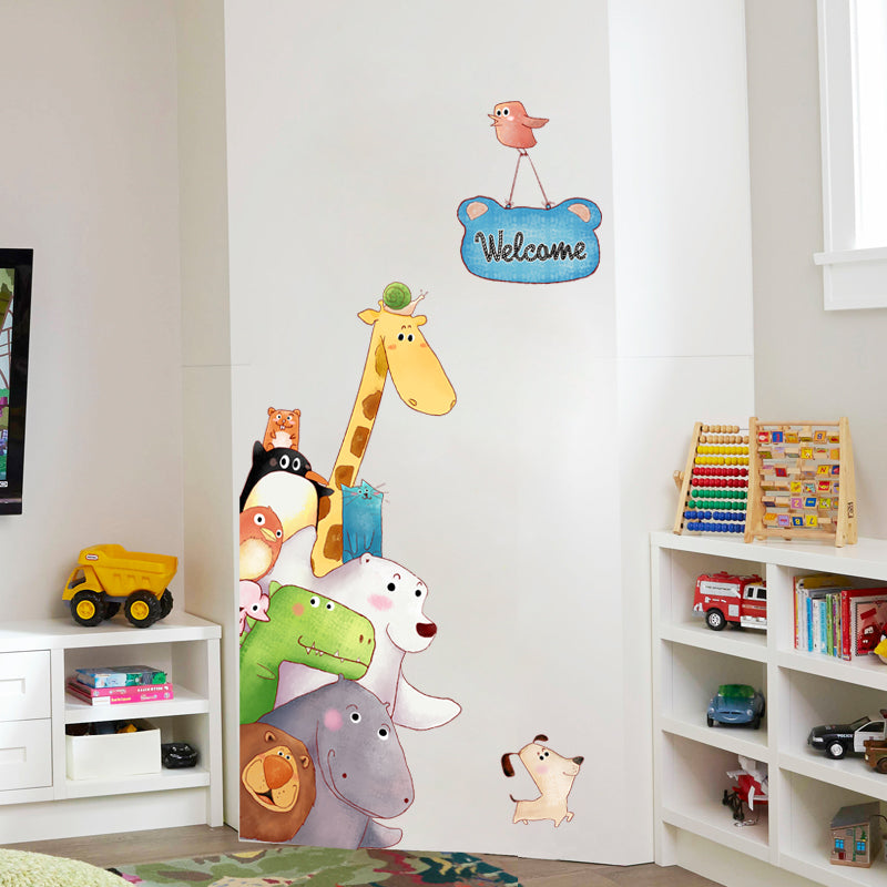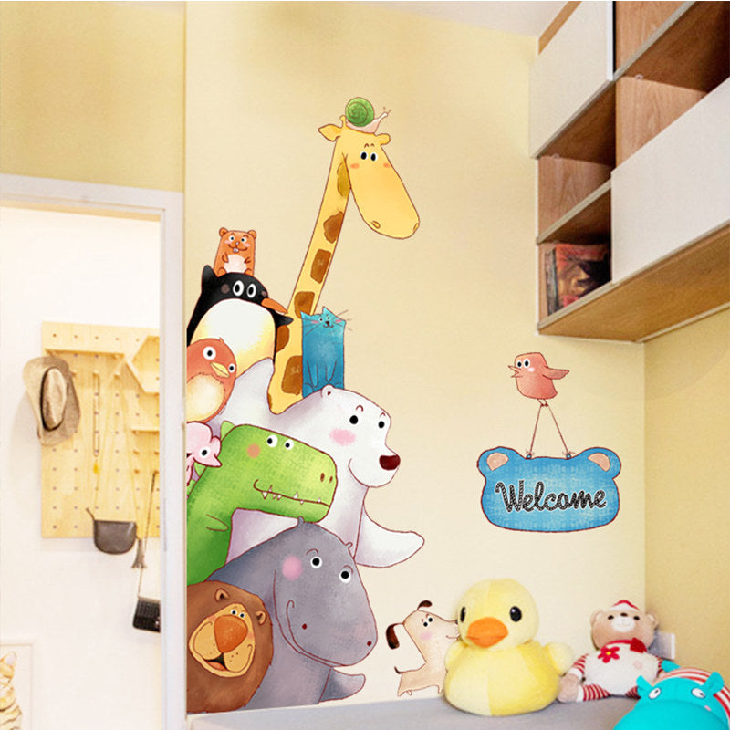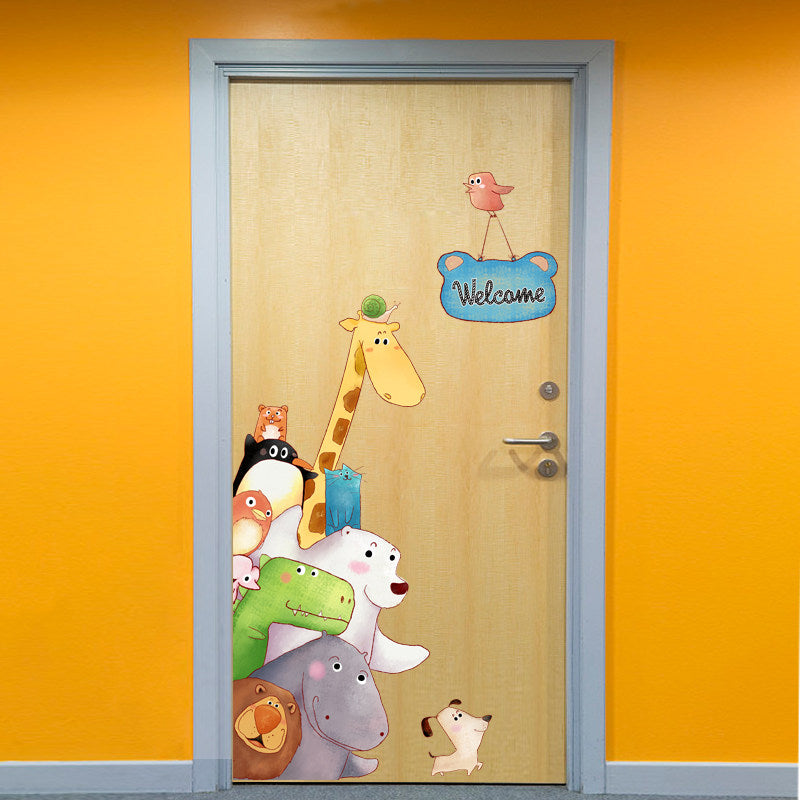 Welcome Door Vinyl Wall Sticker Cartoon Animal Giraffe Kids Baby Room Decoration